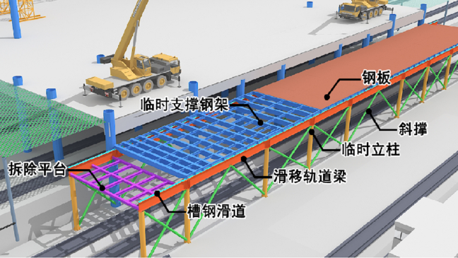 再采取頂推滑移技術拆除臨時支撐平臺架體